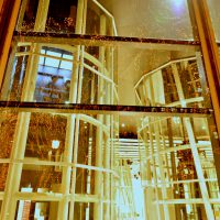 光り輝くなか、エレベーターからの絶景は一瞬で過ぎてしまいます。
