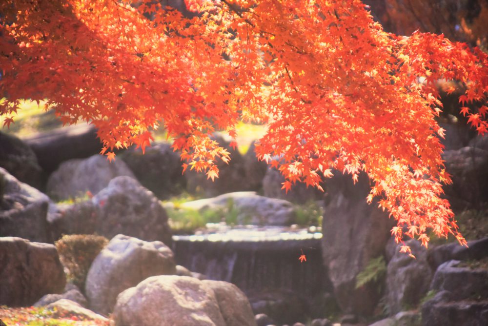 タイトル :秋麗のフィナーレ キャプション :陽の光を受け 鮮やかに散り始める紅葉 撮影場所 :岩手県花巻市 撮影者 :相澤 江利奈 機 材 :カメラ NIKON D750