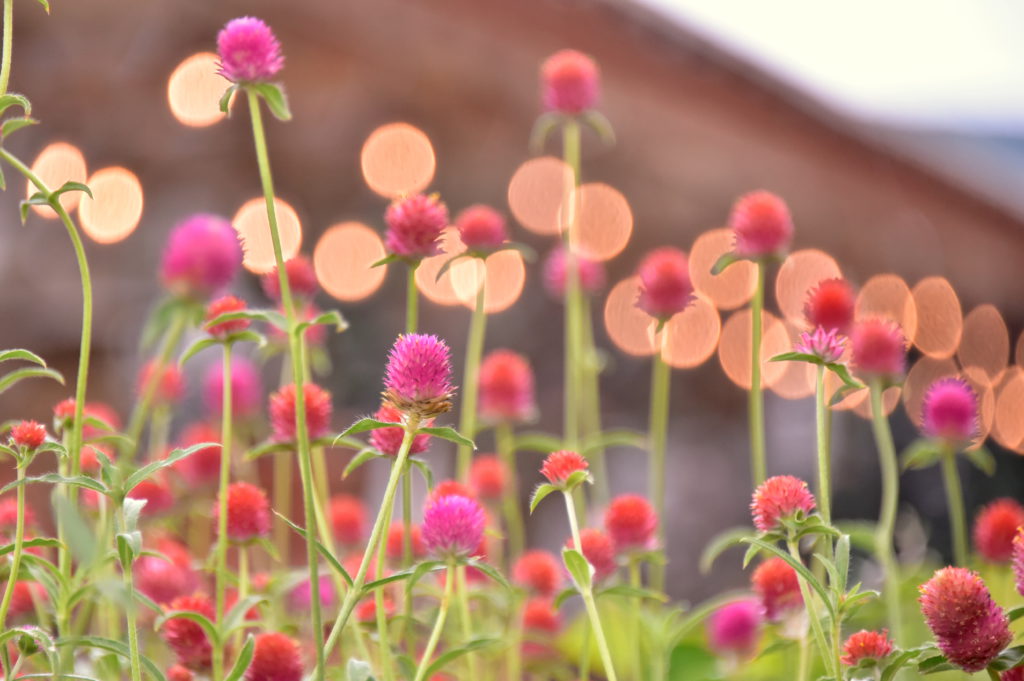 タイトル :可愛い丸 キャプション :光の玉に ちらちらゆれる 千日草 撮影場所 :宮城県仙台市 撮影者 :相澤 江利奈 機 材 :カメラ NIKON D750